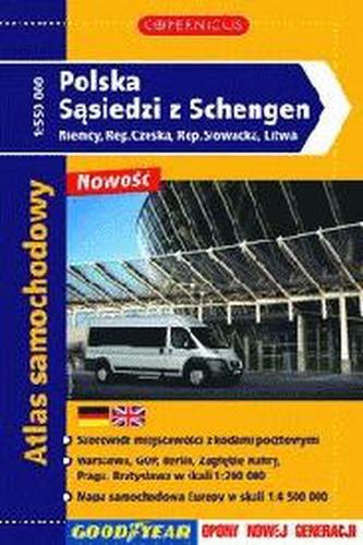 Atlas samochodowy w skali 1:550 000 Skorowidz miejscowości z kodami pocztowymi Warszawa, GOP, Berlin, Zagłębie Ruhry, Praga, Bratysława w skali 1:200 000 Mapa samochodowa Europy w skali 1:4 500 000