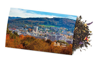 Pohled s dárkem: Zlín s ovocným čajem
