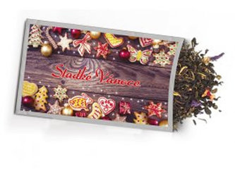 Pohled s dárkem: Sladké Vánoce s ovocným čajem