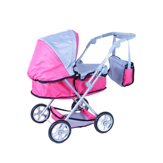 Kočárek pro panenky s polohovací rukojetí růžovo-šedý