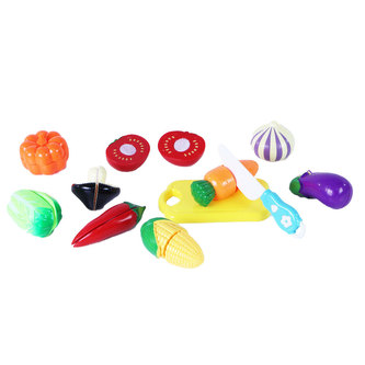 Plastové napodobeniny zeleniny na suchý zip. Sada obsahuje 9 druhů zekeniny, prkénko s nožem, kterým je můžete rozkrojit.