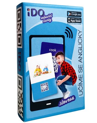 Díky kartičkám iDO děti získají svou první anglickou slovní zásobu. Jednoduše ve hře.Až 30 anglických sloves už za 7 dní používání kartiček.Interaktivní obrázkové karty pro výuku prvních anglických slovíček. S okamžitou AUDIO výslovností. Skenujte QR kódy na kartách a ihned poslouchejte anglické znění slov.Zároveň i karetní hra až pro 4 hráče. Obsah balení: • 30 oboustranných karet (30 anglických slov) • 2 karty s pokyny a pravidly• bodovací žetony Pozor! Sluchátka a mobilní telefon nejsou součástí balení