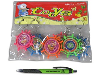 Přívěšek na klíče ve tvaru kormidla, 6 ks na kartě.\nBarevná kormidla s různými druhy obrázků pro děti od 3 let.