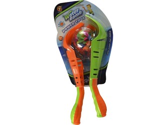 Catch ball\nHračka je určena pro děti 3+.\nRozměr hračky je 33cm.\nMateriál hračky je plast.\nNapusť pomocí redukce vodu do balónku, nafoukni, házej a chytej pomocí chytače. Komu míček praskne jako první prohrál!\nSoučástí balení jsou vodní bomby, redukce na přívod vody a 2ks chytačů.