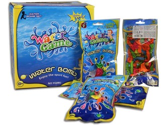 Vodní bomba - balónky, 36 ks (sáčků) v display boxu.\nNapusť barevné balónky vodou, zavaž je a pal na svůj cíl.\nSkvělá vodní hra může začít!\nVhodné pro děti od 8 let.