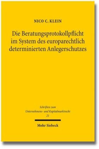 Die Beratungsprotokollpflicht im System des europarechtlich determinierten Anlegerschutzes