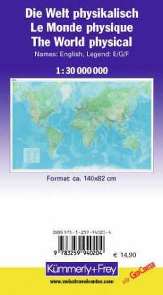 Kümmerly & Frey Poster Die Welt, physikalisch, 1 : 30 Mio.. Le monde, physique, 1 : 30 Mio. / The World, physical, 1 : 30 Mio.