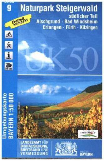 Topographische Karte Bayern Naturpark Steigerwald, südlicher Teil