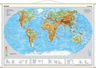 Stiefel Wandkarte Miniformat Die Erde, physisch, mit Holzstäben