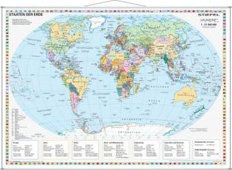 Stiefel Wandkarte Kleinformat Staaten der Erde, Wandkarte, mit Metallstäben