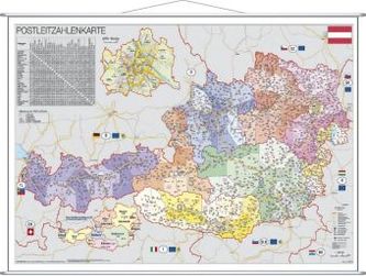 Stiefel Wandkarte Kleinformat Österreich, Postleitzahlen, mit Metallstäben