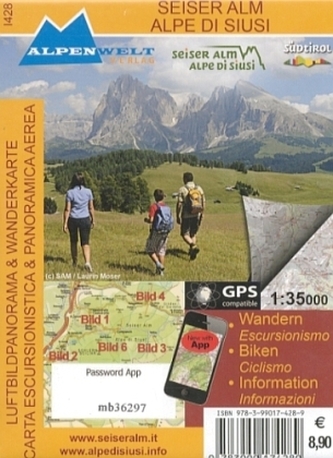 Alpenwelt Luftbildpanorama & Wanderkarte Seiser Alm. Alpe di Siusi