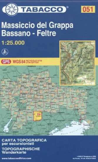 Tabacco topographische Wanderkarte Massiccio del Grappa - Bassano - Feltre