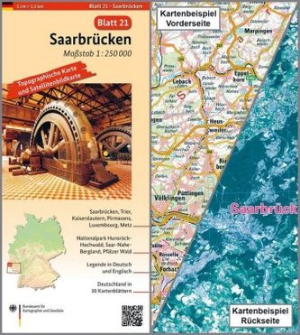Saarbrücken, Blatt 21, ist Teil eines 30-teiligen Kartenwerks im Maßstab 1:250 000, mit dem Deutschland flächendeckend abdeckt wird.
