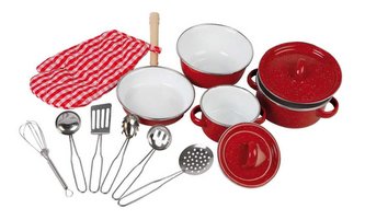 Kouzelné červené hrnce s bílými tečkami, kovové kuchyňské náčiní a chňapka jsou skvělými doplňky každé dětské kuchyně!Německá firma Legler zaměřená na výrobu kvalitních dřevěných hraček od roku 1996. Všechny dřevěné hračky značky small foot mají označení CE a jsou vyráběny dle evropské normy pro bezpečnost hraček EN 71. Použité barvy jsou speciálně vyvinuty pro dřevěné hračky a jsou odolné i proti slinám dětí. Dřevo, které se používá pro tyto hračky, většinou pochází z lesnických společností zapojených do zalesňování. To nabízí všem zákazníkům možnost přispět k zachování přirozeně rostoucích lesů. Dřevěné hračky small foot jsou zářivě barevné produkty, které jsou vyrobeny převážně z přírodních surovin - dřeva. Dětem dělají radost od útlého věku, rozvíjí jejich hmatové a smyslové dovednosti. Cílem značky small foot je podporovat duševní a fyzický vývoj dětí.