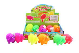 Gumová střapatá ovečka. Uvnitř svítící kulička, která bliká. Rozměry cca 9 x 5 x 4 cm. Věk 3+