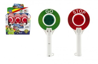 Policejní svítící "plácačka" z plastu se světlem pro všechny malé policisty.Zastavovací terč učí děti základům silničního provozu. Přední strana terče svítí červeně a druhá zeleně.\nVhodné od 3 let.