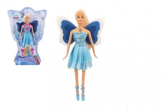 Kouzelná víla s křídly v krásných šatech a se střevíčky. Panenka je na baterie a po zmáčknutí náhrdelníku, který má na krku se jí rozsvítí křídla. Panenka je velikosti 29 cm. Baterie 3x AG13 jsou součástí balení.
