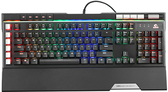 Klávesnice US,herní,drátová(USB),černá,mechanická,RGB podsvícení;Makro klávesy;Multimédia + kolečko pro ovládání hlasitosti;Software;2 x USB výstup;119 kláves;Spínače:modré mechanické spínače;Antighosting: N-key rollover;Klávesy pro zadání vlastní oblasti podsvícení;Kompatibilní s: Win 7 a vyšší