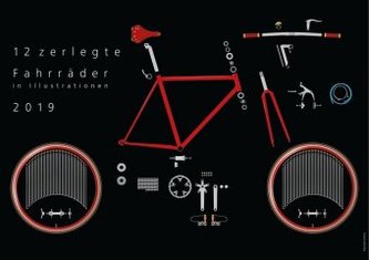 Monatskalender 2019 mit 12 Illustrationen zerlegter Fahrräder