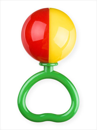 Chrastítko srdíčko koule plast 11cm; 3 barvy; v sáčku od 0 měsíců - 1 kus