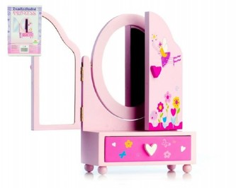 Zrcadlo šperkovnice Princess 3-dílné zásuvka dřevo 16x25x8cm v krabici